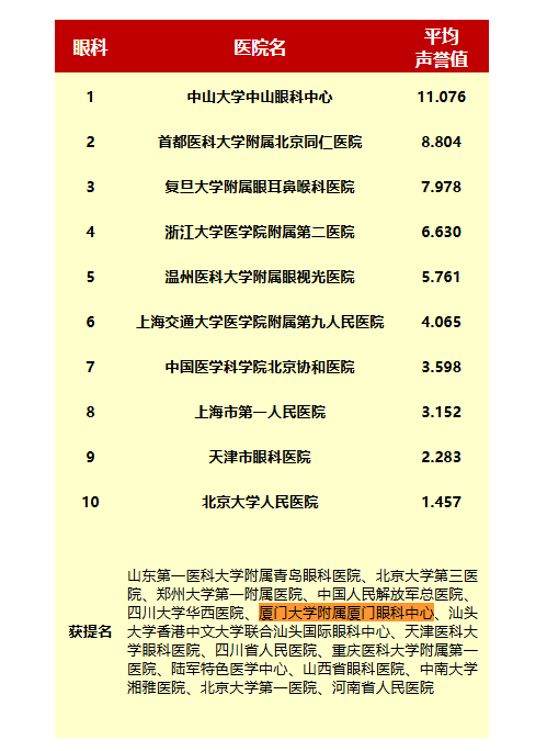 福建第一,全國16!復旦醫院排行榜公布,廈門眼科中心獲眼專科聲譽排行榜提名!